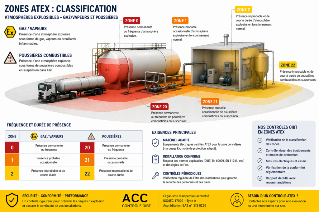 Ces environnements nécessitent des équipements électriques certifiés et des contrôles rigoureux.